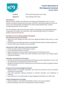KCYS Centre Operations & Development Assistant – CSP